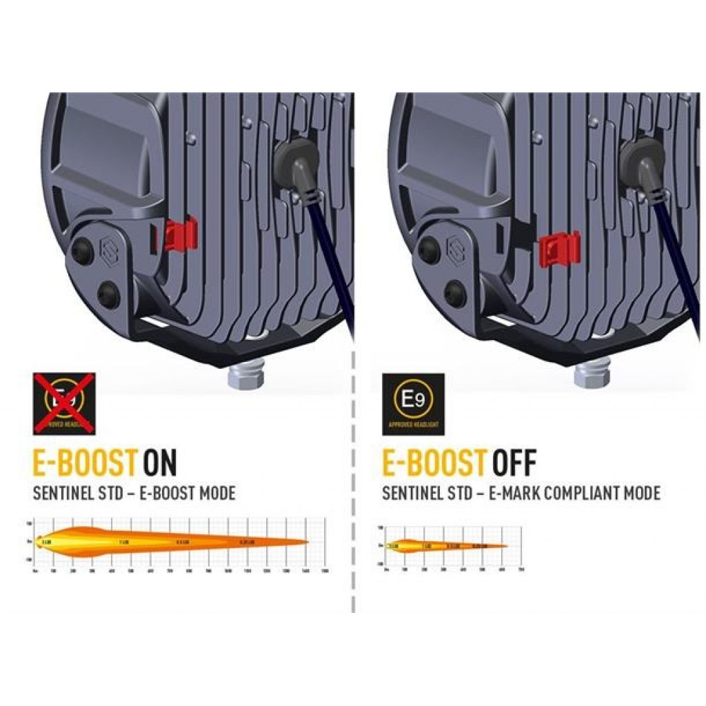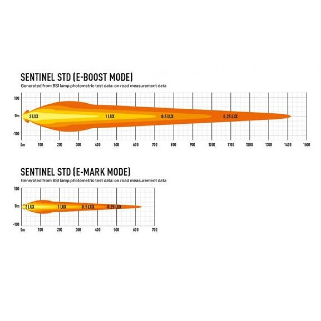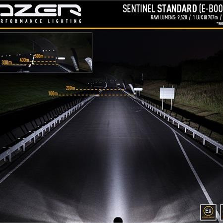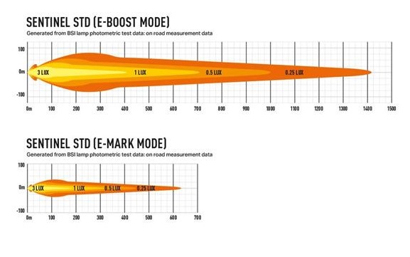 Nytt for 2021, Sentinel-serien er 9tom runde lamper som kombinerer karakteristisk high-end produktdesign, med overlegen lysytelse og byggekvalitet som symboliserer Lazer Lamps-navnet. Tilgjengelig i standard- eller elitekvaliteter, har førstnevnte 20 høyeffekts-LED-er og leveres med enten svart eller krom-finish inne i lampen.Til sammenligning er Elite-produktet kun tilgjengelig med det svarte innvendige utseendet, men med en kombinasjon av 32 høyeffekts-LED-er, representerer det den aller beste lysytelsen som forventets fra et produkt som bærer «Elite»-etiketten.Både Sentinel Black og Chrome-lamper, i tomStandardtom-serien, produserer samme lysytelse. Lampene sender ut 9529RAW lumen og leverer 1 lux som når over 700m, imponerende i seg selv, men med tanke på den 52 graders horisontale strålevinkelen, er dette et produkt som er designet for å gi maksimal synlighet for all slags vei- og terrengbruk. Som alle Lazer-produkter er fargetemperaturen på behagelige 5000K lett for øyet, samtidig som skarpheten og definisjonen av objekter foran maksimeres.Hva er inkludert:- x1 Sentinel (CHROME) LED Lampe- x1 #39Slim#39 Mount Kit (1141k)- x1 Installasjons instruksSPESIFIKASJONER :E-BoostE-Mark ModeVoltage Range (DC)10-32V10-32VLED Life50,000 hrs50,000 hrsWeight2.4kg2.4kgHIGH BEAM FUNCTIONTotal Luminous Flux9520Lm1904LmTotal Driver #39FOV#39 Flux†5588Lm1118LmColour Temperature5000k5000kNumber of High Output LEDs2020Power Consumption87Watts17WattsPeak Current Draw (@11V)8,1Amps1,6Current Draw (@14.4V)10.5 Amps0.8AmpsStart-up Time *5 ms5 msCERTIFICATIONHigh BeamN/AECE R112E-Mark RefN/A20PHOTOMETRIC DATAHoriz Beam Angle52Deg52Deg0.25 lx Line1414m632m0.5 lx Line1000m447m1 lx Line707m316m3 lx Line408m183m