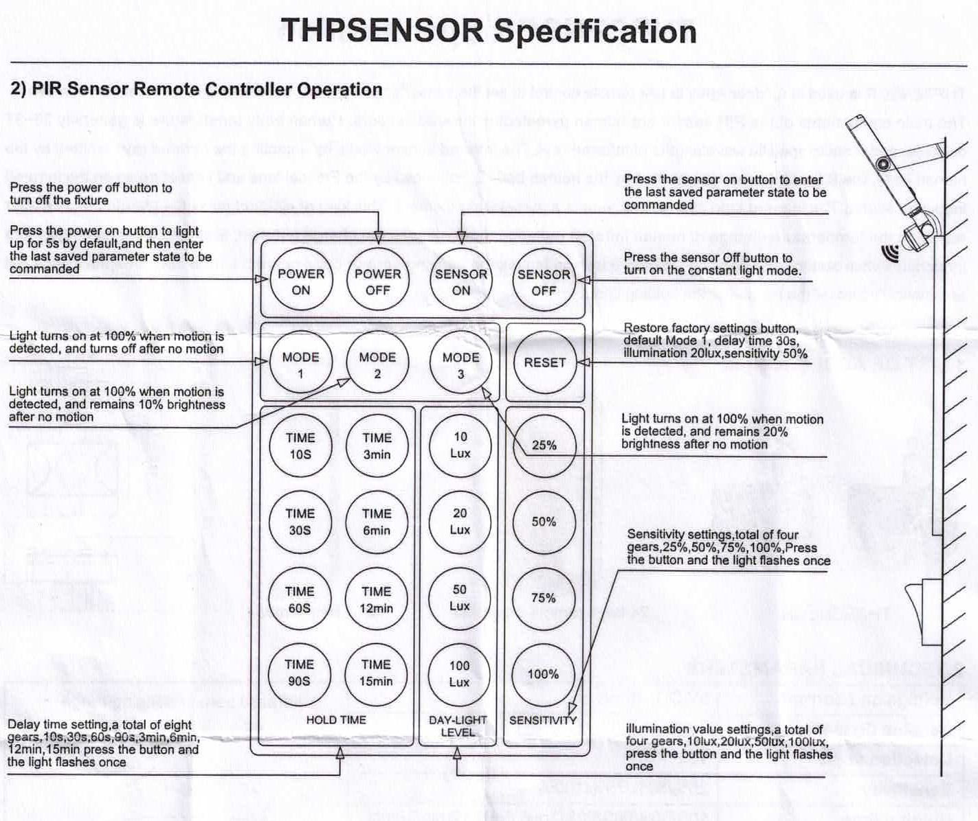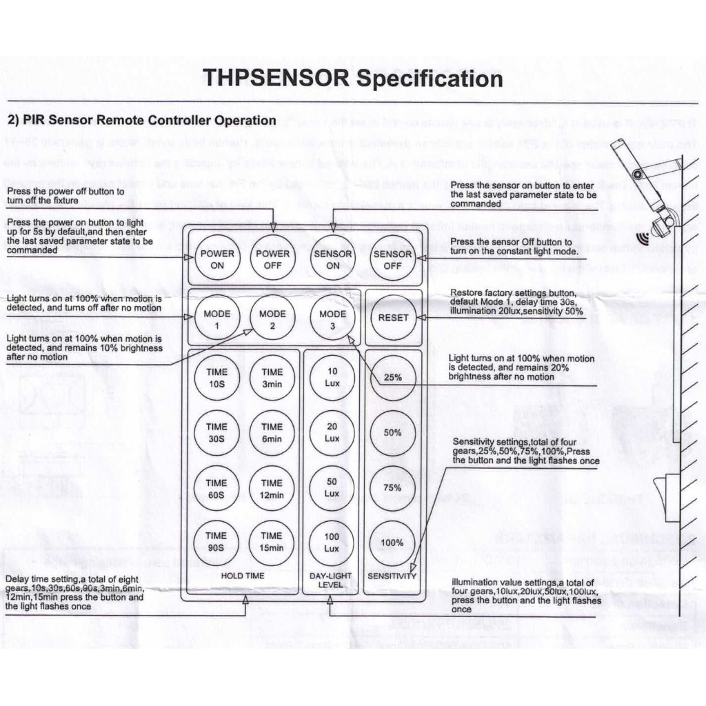 Bevegelse/lyssensor tilLTC055THP ogLTC105THP med fjernkontroll der en har 24 muligheter,slik som:hvor lenge den skal lyse etter at sensor har oppdaget bevegelse. 8 valg fra 10sek. til 15min.Hvilke lysstyrke det skal være før den tenner med fire innstillinger fra 10lux til 100lux.kan også justere sensiviteten på bevegelse med fire valg fra