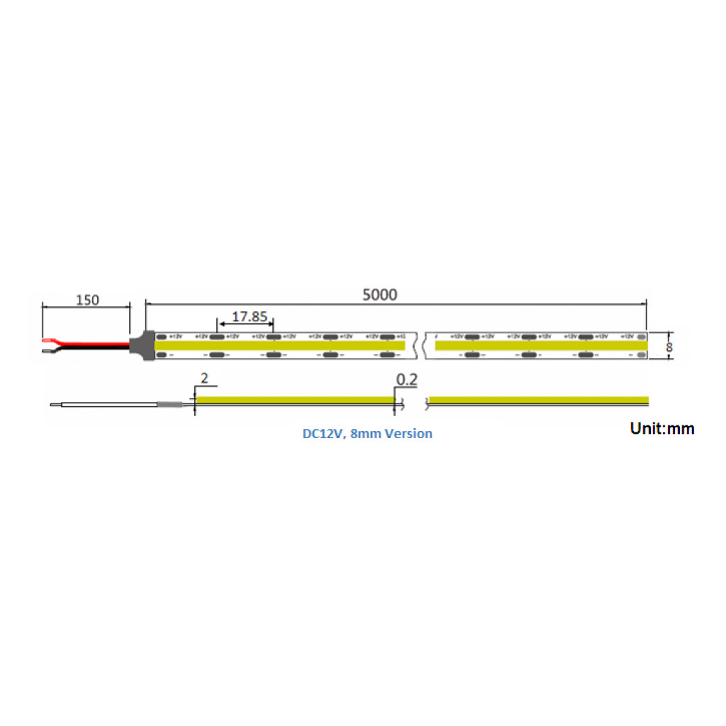 | Størrelse | lengde 5000x8mm |