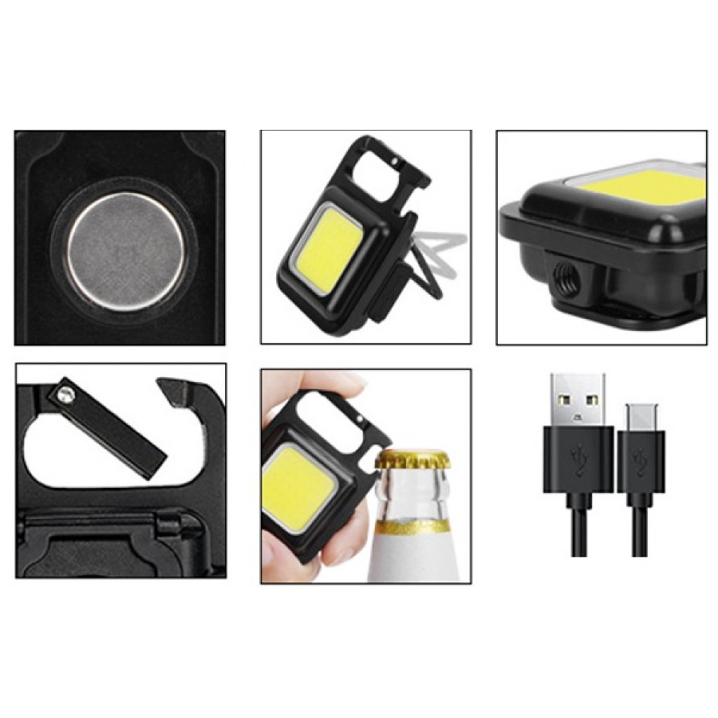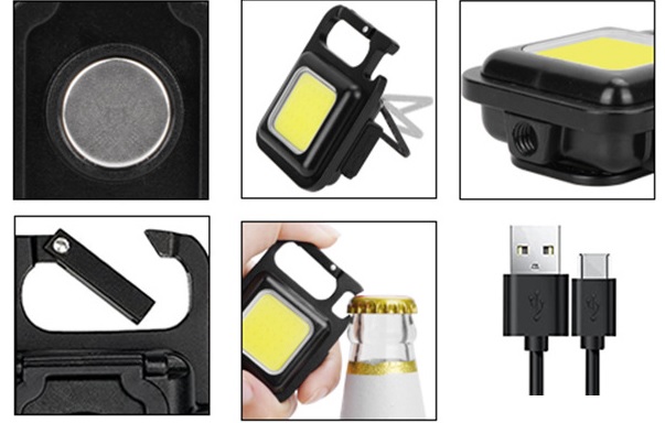 Ledtronic ledlys for nøkkelring.Denne er fin å ha hengende på nøkkelknippe. Den har også en magnet på baksiden, slik at du kan henge den enkelt fra deg, eller eventuelt sette den fra deg ved hjelp av støttebeinet på baksiden.Lades enkelt ved hjelp av en medfølgende USB-kabel. Denne leverer også masse lys, som er veldig godt å ha tilgang til om du står i mørket. Den har også en egen opptrekker for flasker.