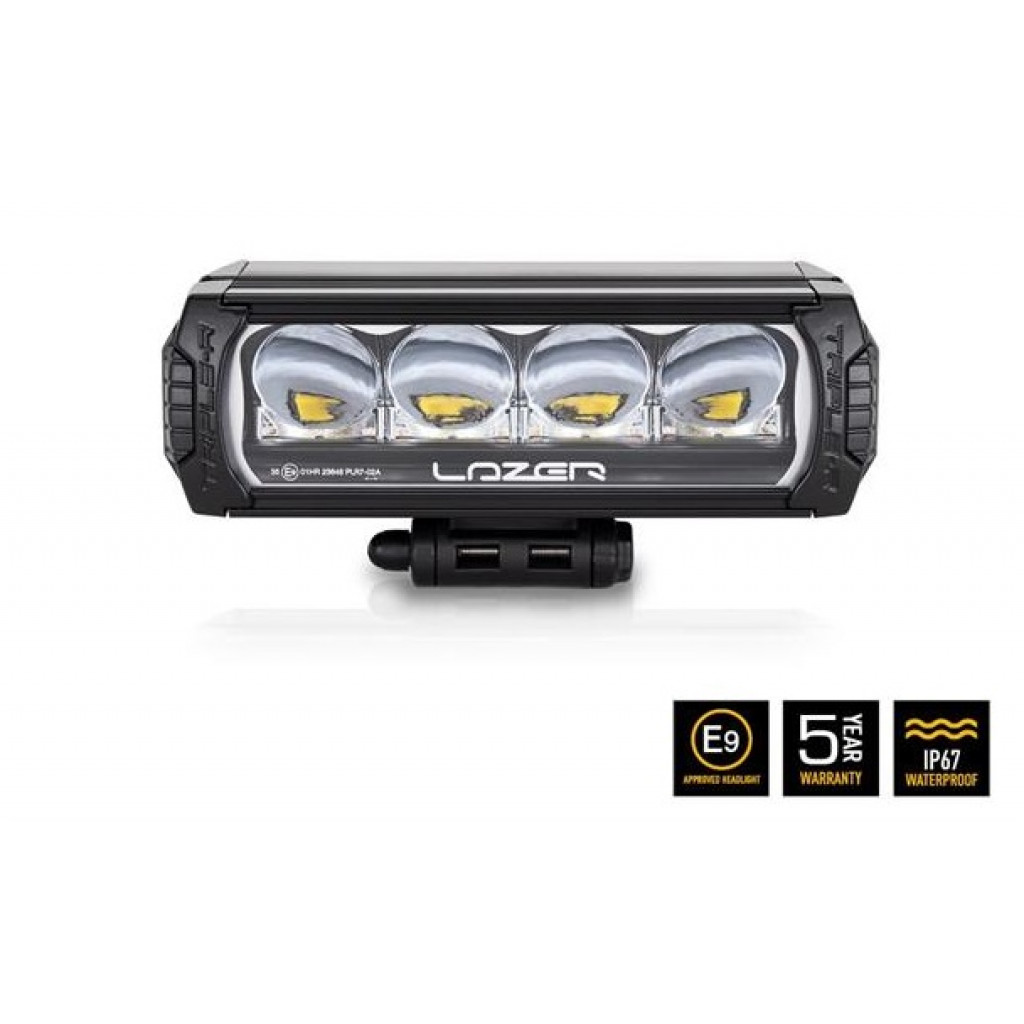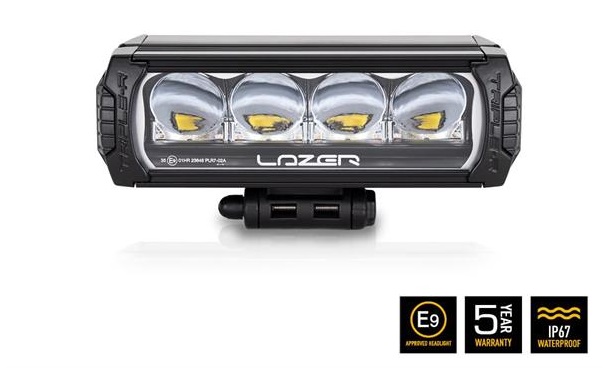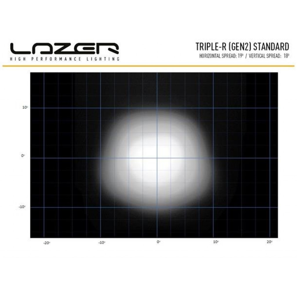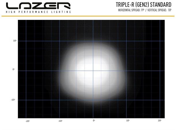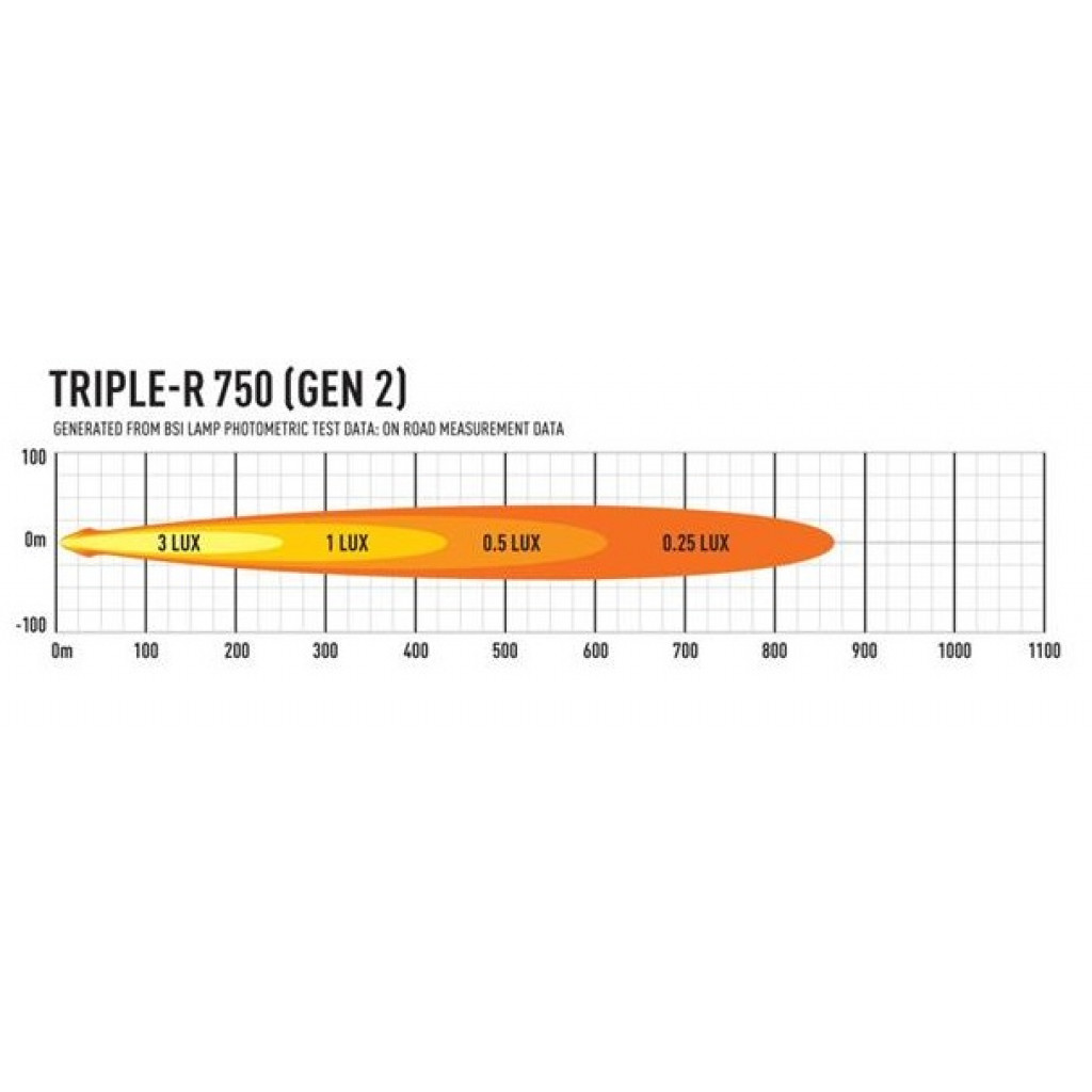 Lazer Triple-R 750 med parklysSe og bli sett med Triple-R 750 Standard med integrerte posisjonslys. Bygger på suksessen og populariteten til Triple-R-serien, har TR750 fått en sikkerhets- og stiloppgradering takket være tillegget av integrerte posisjonslys som aktiveres med kjøretøyets standard sidelys.Hva er inkludert:- x1 Triple-R 750 LED Lamp- x1 Centre Mount (1114k)- x1 Installation InstructionsSpesifikasjoner :Voltage Range9-32VLED Life50,000 hoursOptical Efficiency92%Weight780 grHIGH BEAM FUNCTIONTotal Luminous Flux4100 LmColour Temperature5000KNumber of High Output LEDs4Power Consumption45 WattsCurrent Draw (at 14.4V)3.1 AmpsCERTIFICATIONHigh BeamECE R112DIMENSIONSWidth220 mmDepth103 mmHeight73 mmPHOTOMETRIC DATAHorizontal Beam Angle11 degrees0.25 lx Line786 metres0.5 lx Line556 metres1 lx Line393 metres3 lx Line227 metres