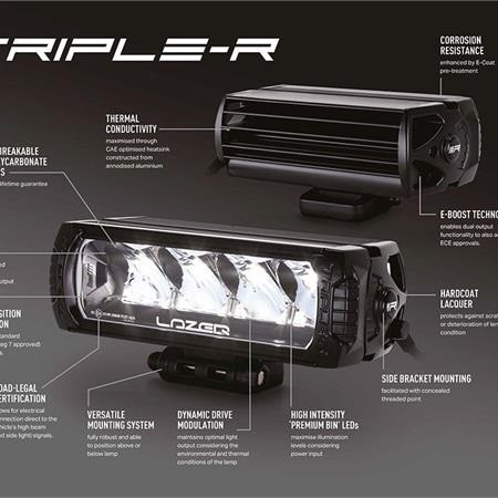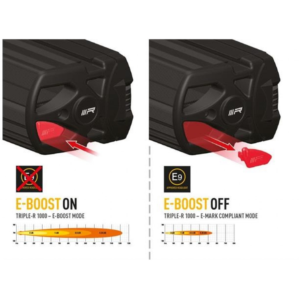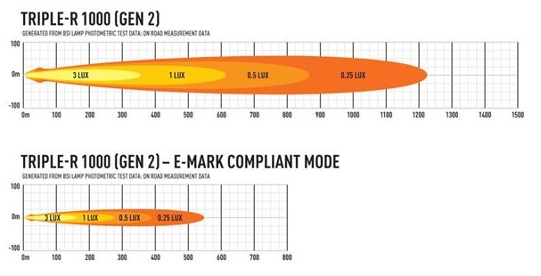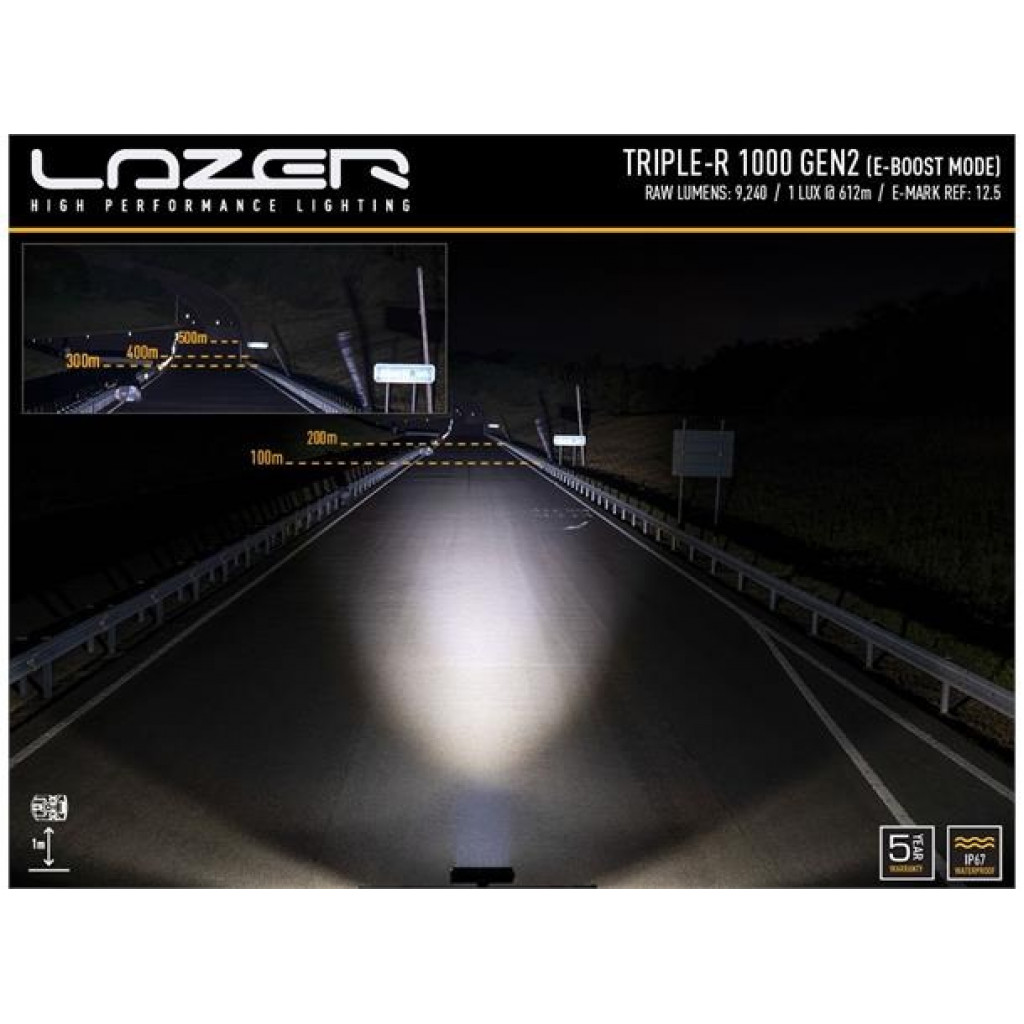 Den ikoniske Triple-R-serien, oppgradert i 2020/21, leverer eksepsjonell, lang rekkevidde. Opprinnelig utviklet for de kompromissløse kravene til profesjonell bane- og rallymotorsport, har serien utviklet seg til å bli en fast favoritt på markedet for personbiler, 4x4, lette kommersielle og tunge lastebiler, både på veiog iterreng. Nylige tillegg til Triple-R-serien har innovative funksjoner og funksjonalitet, inkludert patentsøkt teknologi som aldri er sett før på en Ledbar.Hva er inkludert :- x1 Triple-R 1000- x2 Centre Mount (1114k)- x1 Installation InstructionsSPESIFIKASJONER :E-BoostE-Mark ModeVoltage Range (DC)10-32V10-32VLED Life50,000 hrs50,000 hrsWeight1,7 kg1,7kgHIGH BEAM FUNCTIONTotal Luminous Flux9240Lm1848LmTotal Driver #39FOV#39 Flux†5572Lm1114LmColour Temperature5000k5000kNumber of High Output LEDs88Power Consumption88Watts17,6WattsCurrent Draw (@14.4V)6,1Amps1,2AmpsStart-up Time *100ms100msCERTIFICATIONHigh BeamN/AECE R112E-Mark RefN/A12,5PHOTOMETRIC DATAHoriz Beam Angle19Deg19Deg0.25 lx Line1225m548m0.5 lx Line866m387m1 lx Line612m274m3 lx Line354m158m