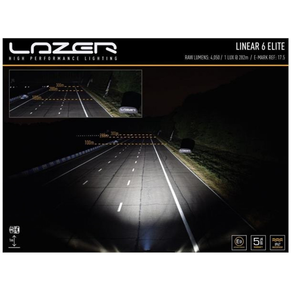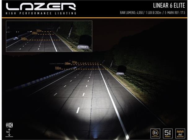 Linear-serien, som representerer det aller beste innen slanke ekstralys, bruker en kombinasjon av svært effektive 3W LED-er og vakuummetallisert bred optikk for å levere et perfekt avstemtlysbilde for hverdagsbruk. Linear-serien måler bare 40 mm i høyden og er en utmerket løsning når enten plassen er begrenset eller når du ser etter en diskret installasjon somdu vil legge merke til om natten.Hva er inkludert:- x1 Linear-6 EliteLED-lampe- x1 Anti-tyveri sidefeste (1127k)- x1 InstallasjonsinstruksjonerSpesifikasjoner :Voltage Range10-32VLED Life50,000 hoursStartup time100 msWeight495grHIGH BEAM FUNCTIONTotal Luminous Flux4050LmColour Temperature5000KNumber of High Output LEDs12Power Consumption42WattsCurrent Draw (at 14.4V)2.9AmpsCERTIFICATIONHigh BeamECE R112DIMENSIONSWidth232mmDepth62mmHeight40mmPHOTOMETRIC DATAHorizontal Beam Angle42degrees0.25 lx Line563metres0.5 lx Line398metres1 lx Line282metres3 lx Line163metres
