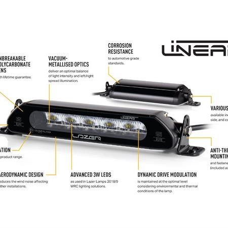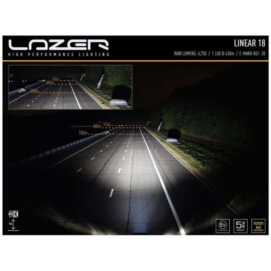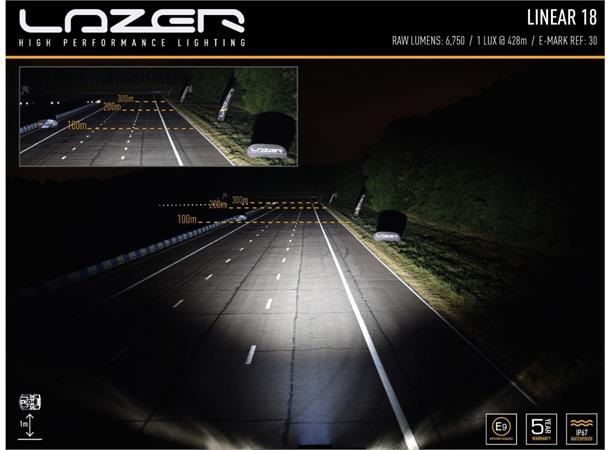 Linear-serien, som representerer det aller beste innen slanke fjernlyskjørelys, bruker en kombinasjon av svært effektive 3W LED-er og vakuummetallisert bred optikk for å levere et perfekt avstemtlysbilde for hverdagsbruk. Linear-serien måler bare 40 mm i høyden og er en utmerket løsning når enten plassen er begrenset eller når du ser etter en diskret installasjon som mest sannsynlig vil bli lagt merke til om natten. Med parklys.Hva er inkludert:- x1 Linear-18 Std LED-lampe- x1 Anti-tyveri sidefeste (1127k)- x1 InstallasjonsinstruksjonerSpesifikasjoner:Voltage Range (DC)10-32VLED Life50,000 hoursWeight1090 grHIGH BEAM FUNCTIONTotal Luminous Flux6750LmTotal Driver #39FOV#39 Flux †4806LmColour Temperature5000KNumber of High Output LEDs18Power Consumption63WattsCurrent Draw (at 14.4V)4,4AmpsStart-up Time *100msCERTIFICATIONHigh BeamECE R112ECE Reference30DIMENSIONSWidth532 mmDepth62 mmHeight40 mmPHOTOMETRIC DATAHorizontal Beam Angle34degrees0.25 lx Line855metres0.5 lx Line605 metres1 lx Line428 metres3 lx Line247 metres
