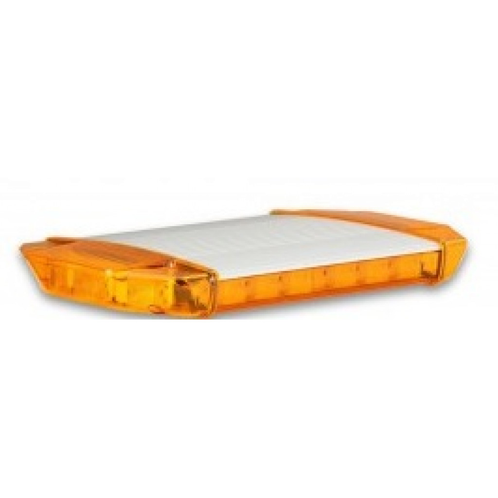 ECE R65 sertifisert Lysbjelke på 600mm med oransje strobelys. Moduler med kraftige tredje gen. LED Leveres med lighterkontakt. Tilgjengelig i flere farger. Lagerføres med oransje lys. ( Andre farger på bestilling ) Leveres i 12/24 volt utførelse. Lengde: 600mm / Bredde 375mm. Tykkelse: 60mm Total høyde m/ brakett: 80mm Justerbare braketter i hele bjelkens lengde. Aluminium topp og bunn. Helstøpt ABS endestykker og linser i oransje farge. Neodym magnetfester medfølger.