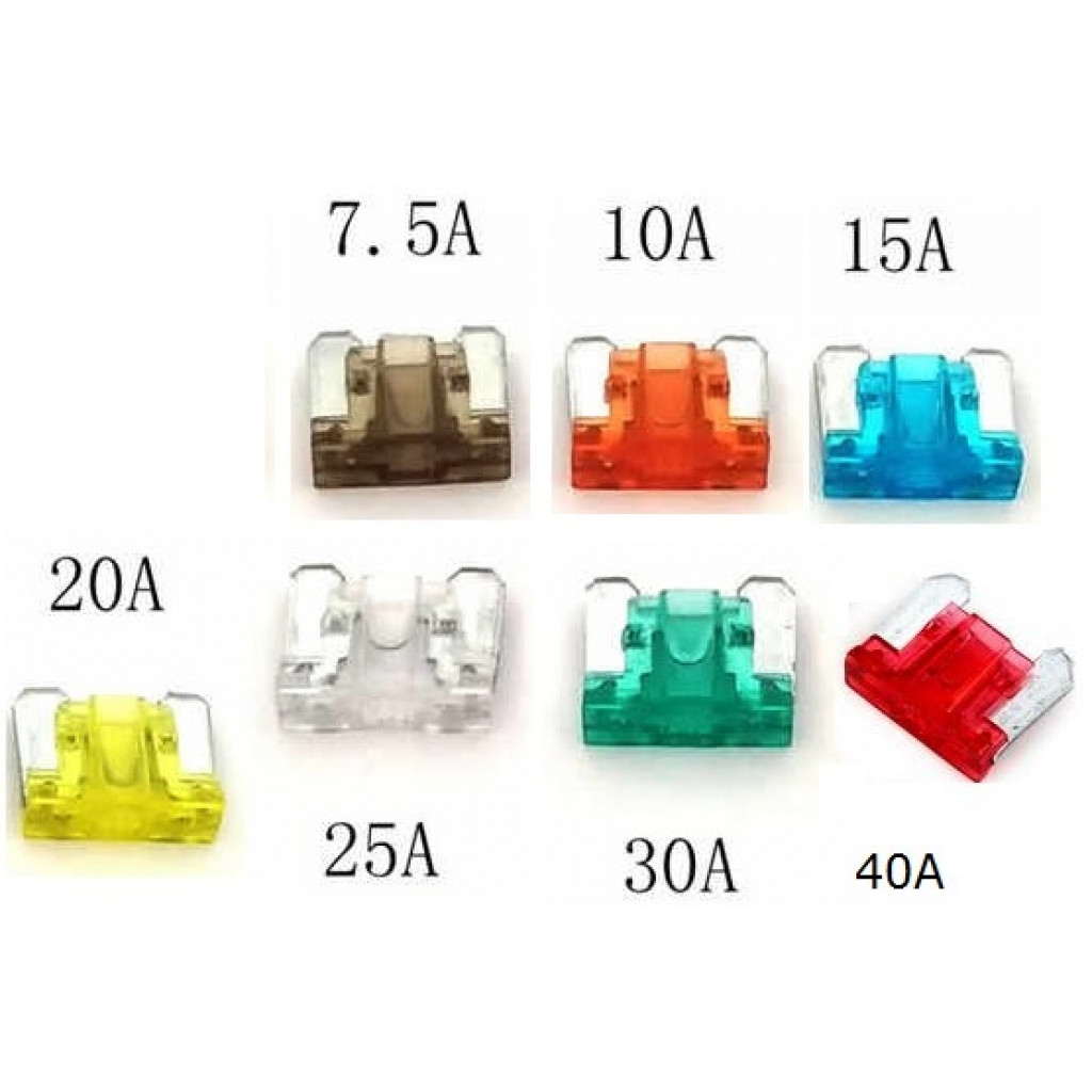 Sikringssett micro med totalt 105 stk sikringer.7.5A x 10 stk10A x 20 stk15A x 20 stk20A x 20 stk25A x 15 stk30A x 10 stk40A x 10 stk