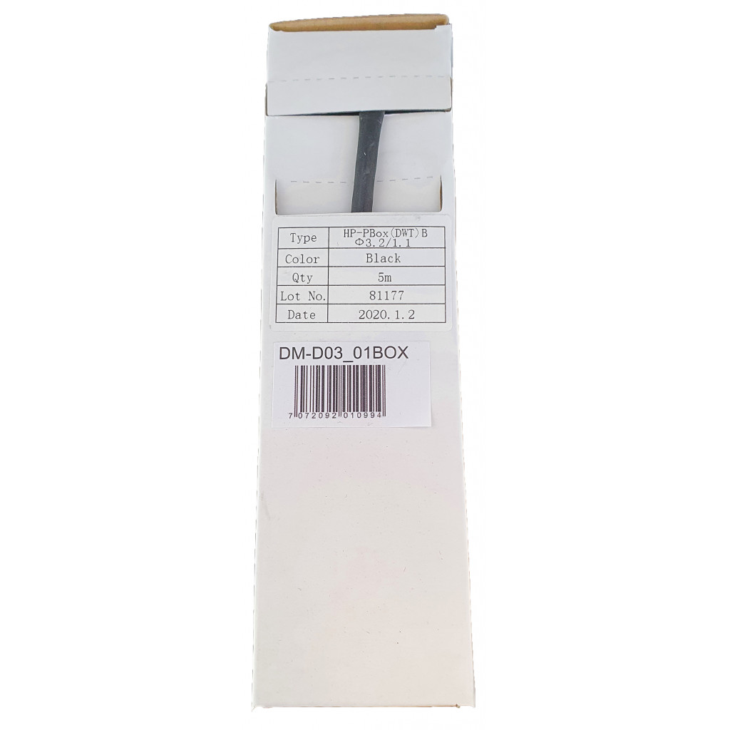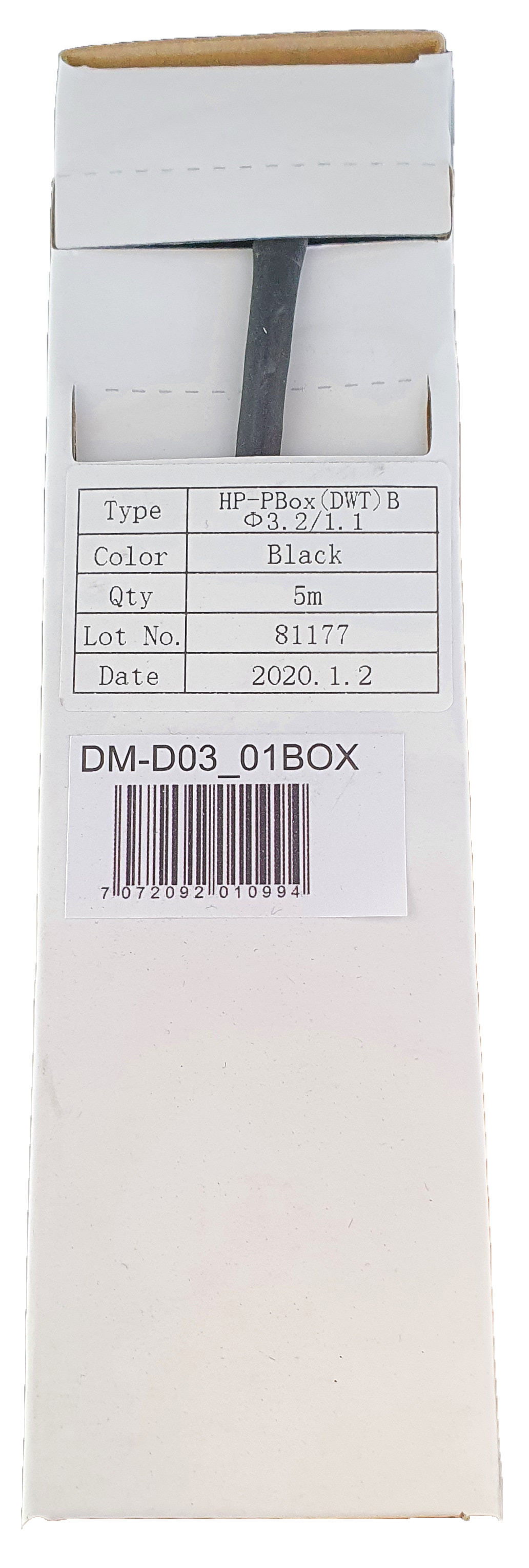 Krympestrømpe med lim. Indre diameter Ø3,0mm Kan krympes ned til 1,0mm og gir en vanntett skjøt. Mål på eske: 16x17cm Eske med 5 meter krym..