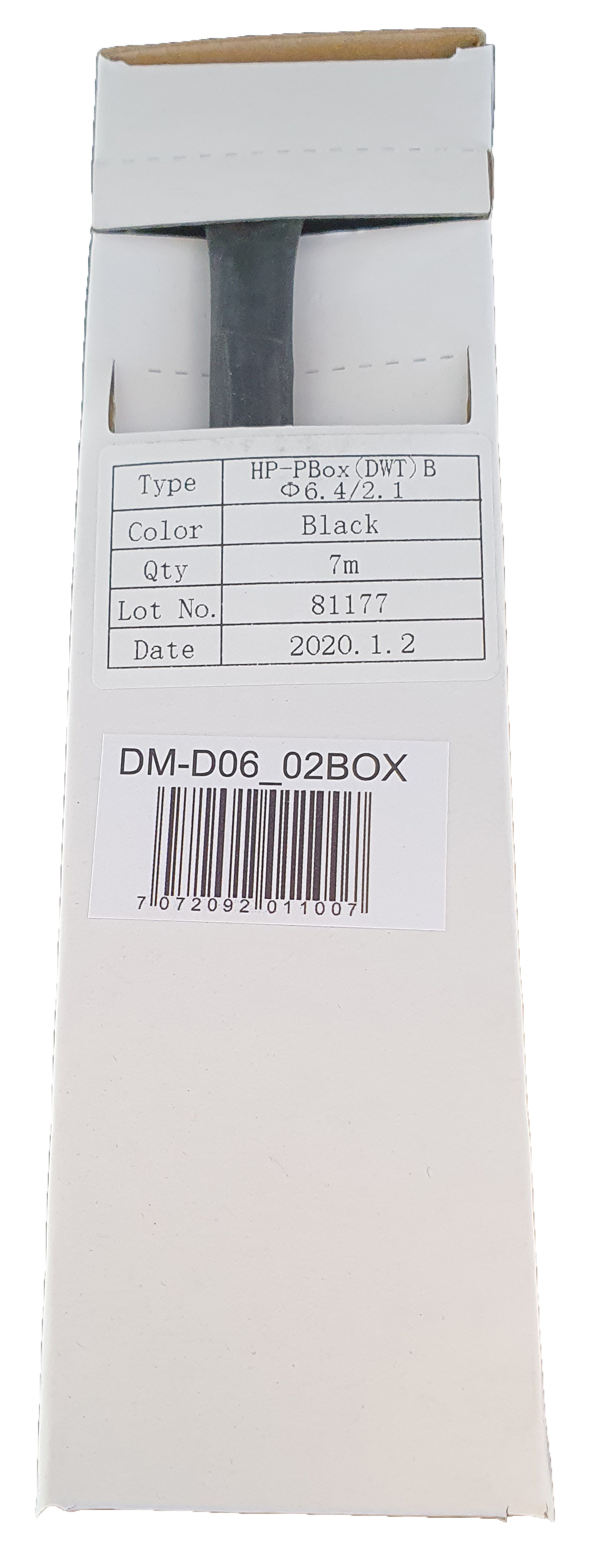 Krympestrømpe med lim. Indre diameter Ø6,4mm Kan krympes ned til 2,0mm og gir en vanntett skjøt. Mål på eske: 16x17cm Eske med 7 meter krympestrømpe