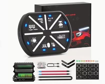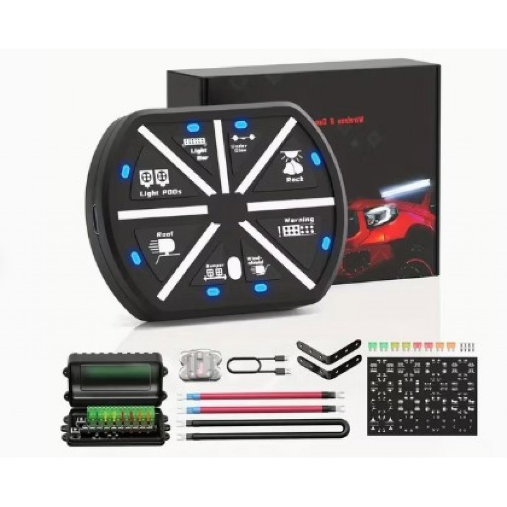 Dette produktet bruker en trådløs fjernkontroll og lar deg kontrollere 8 kanaler med LED-lys eller andre elektriske enheter eksternt. Den har stor kapasitet, stabil ytelse, liten størrelse og enkel installasjon. Kontrolleren kan brukes til biler, båter, hjem, hage mm. Den har 12V–24V inngangsspenning og kan utstyres med reléer med høy strøm.