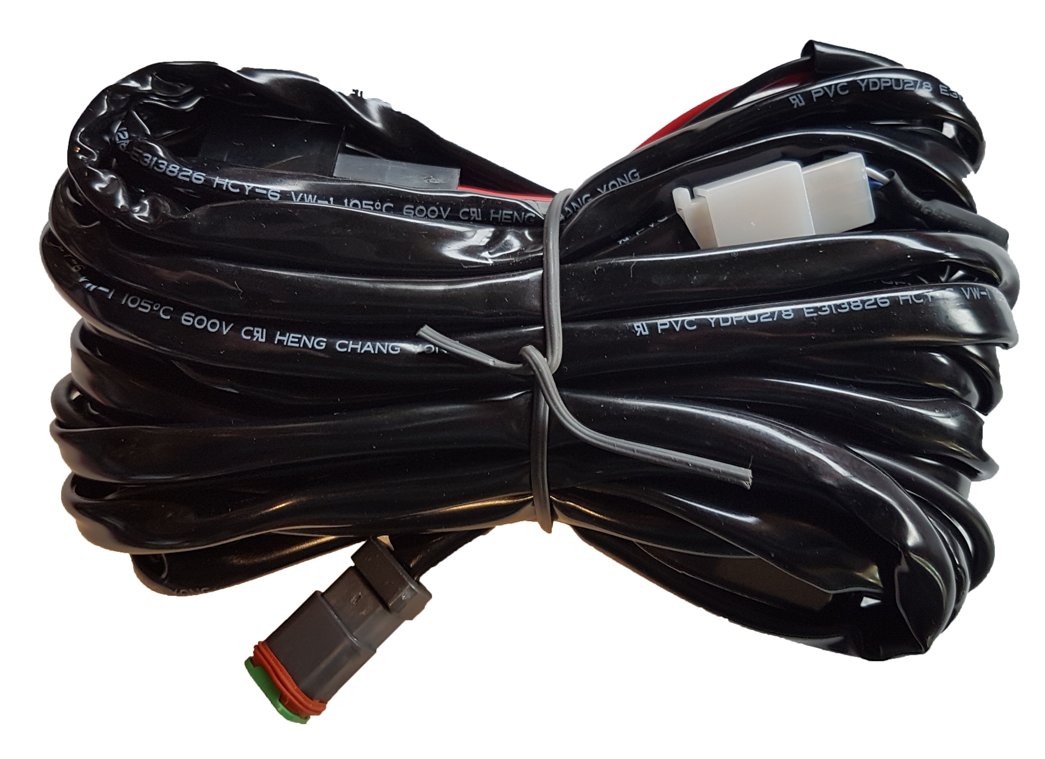 12 volt relesett med kabler for bruk sammen med arbeidslys etc. Utgang for 4 lamper. 3,5 meter kabel med 4 stk. DT2 hun-koblinger. Av/på bryter og sikring følger med i settet.