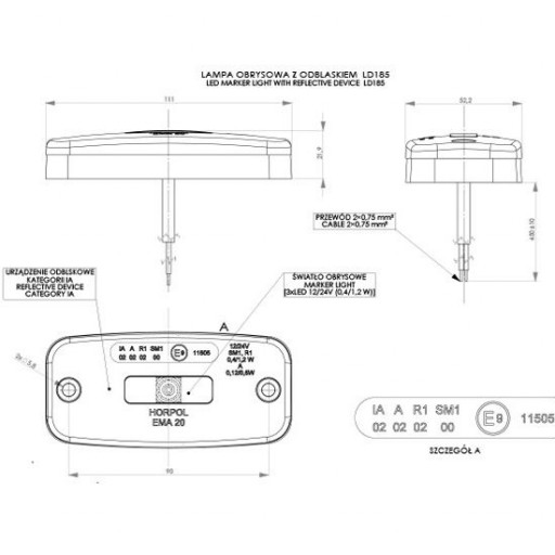 - Gul markeringslys, 111x52,2x21,9mm 12 24V