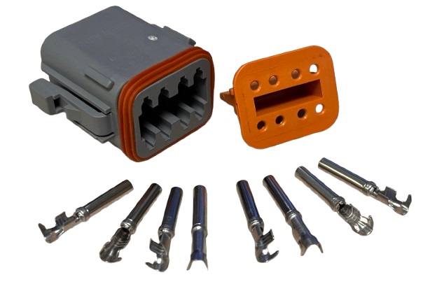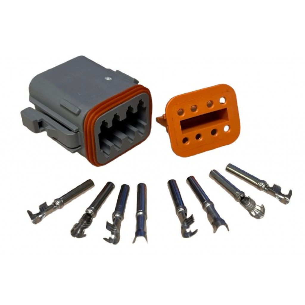 8 pinns koblingsplugger for arbeidslys etc. Originalnummer: DT06-8S Leveres i komplett sett med hunkobling, stifter og tetninger. Passer for kabeldiameter: 0,75-1,5 mm².