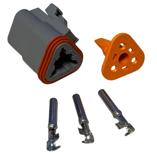 3 pinns koblingsplugger for arbeidslys etc. Originalnummer: DT06-3S Leveres i komplett sett med hunkobling, stifter og tetninger. Passer for kabeldiameter: 0,75-1,5 mm².