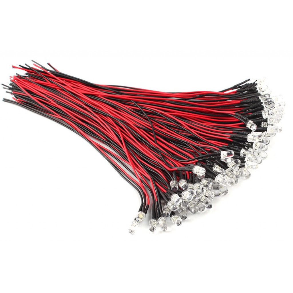 Oransje Lysdiode 5mm, 24 volt, 20cm kabel 10pakk